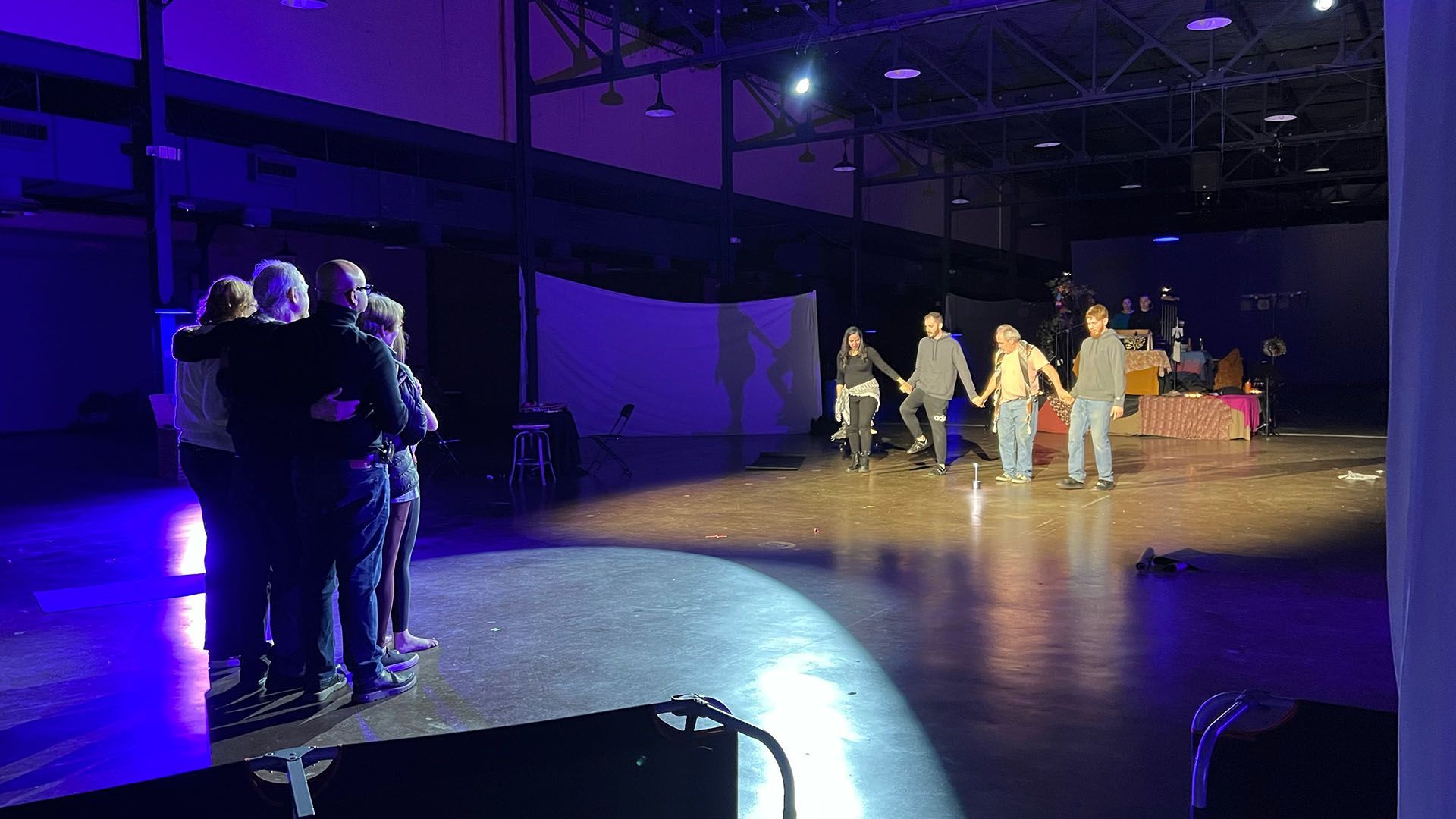 - Audience members will walk through our performances over several location sites, or be situated in one location where they are welcome to walk around, or view the production from any seat of their choice.